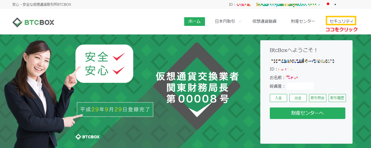 財産を守るうえで一番重要なセキュリティ設定に行きましょう!ここから二段階認証の設定方法を説明します。